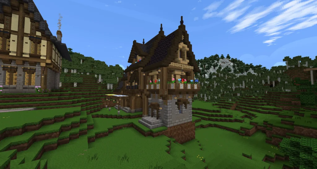 Das Durchgangs-Haus, im klassischen mittelalterlichen Baustil erbaut, ist nun vollständig abgeschlossen. Mit zwei Shops im Erdgeschoss und einem Wohnbereich im Obergeschoss dient es sowohl als Handelsplatz für die Stadtbewohner als auch als gemütlicher Rückzugsort. Dieses neue Gebäude fügt sich nahtlos in das wachsende Stadtbild ein und bietet sowohl für Geschäftsleute als auch für Bewohner einen praktischen Nutzen.