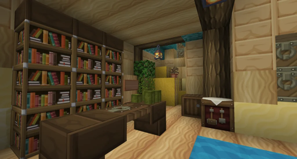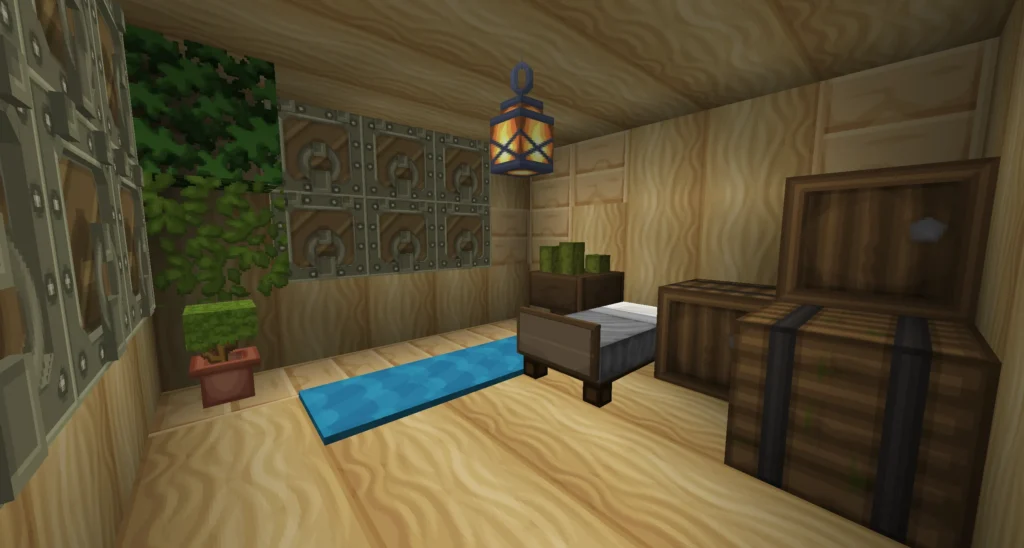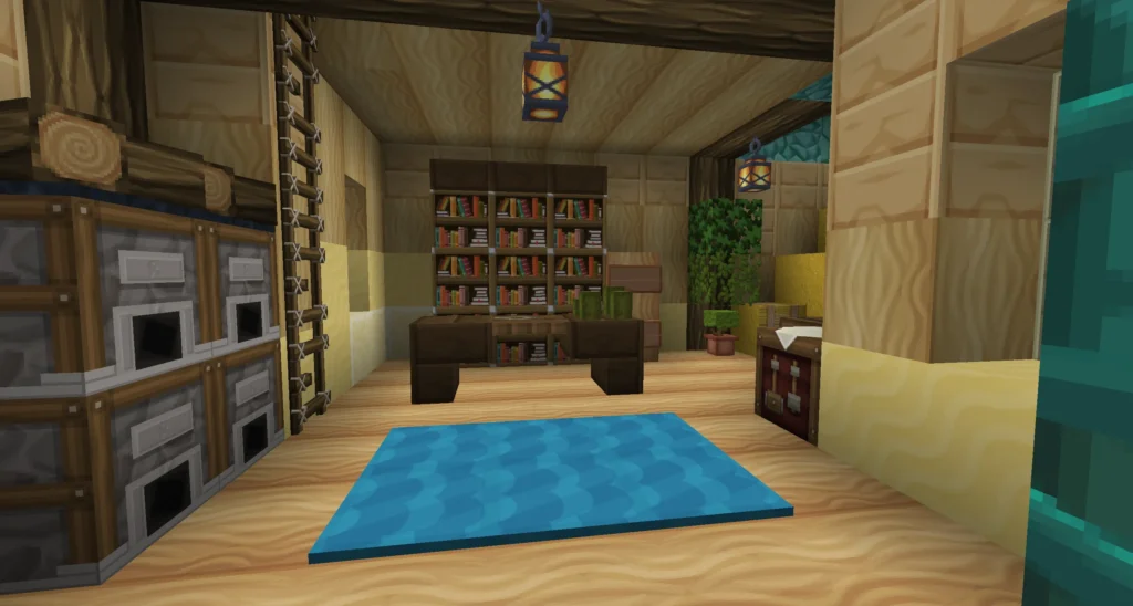 Auch im Inneren setzt sich dieser Eindruck fort: Rustikale Wohn- und Arbeitsbereiche, Lagerflächen für Getreide sowie gemütliche Ecken schaffen eine glaubwürdige Mischung aus Funktionalität und Wohnlichkeit. Bücherregale, Kisten, Werkbereiche und Schlafräume erzählen die Geschichte eines Gebäudes, das täglich genutzt wird – von Müllern, Lehrlingen und vielleicht auch neugierigen Besuchern.