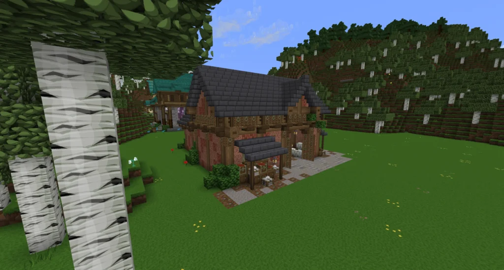 Das Gebäude fügt sich harmonisch in seine Umgebung ein – eingebettet in einen dichten Birkenhain, der nicht nur als natürliche Kulisse dient, sondern gleichzeitig als naheliegende Rohstoffquelle gedacht werden kann. Kurze Wege, klare Funktion: Das Sägewerk Ost macht aus Stamm und Ast verwertbares Material für Bau und Handwerk in ganz Crownfall.