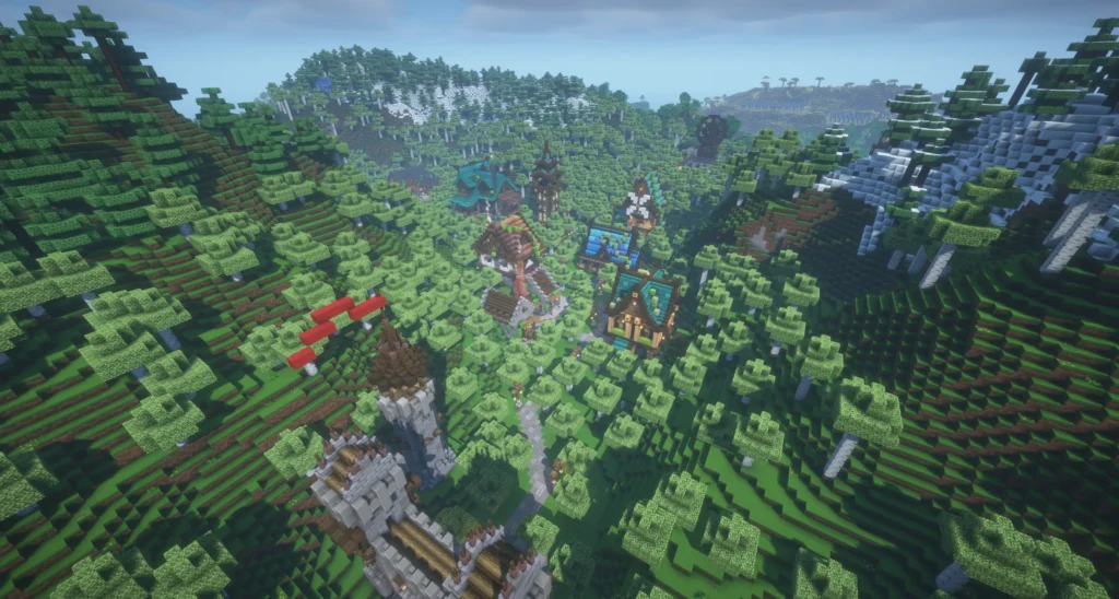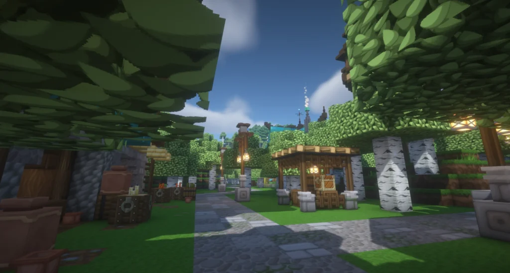 Um die Oststadt in ihrer Gesamtheit erlebbar zu machen, haben wir mit dem Replaymod einen cinematischen Rundflug durch das gesamte Viertel aufgenommen — von den Eingangsgassen bis zu den Hinterhöfen, vom Markthaus bis zum Sägewerk. Das Video zeigt, was Worte nur andeuten können: wie das Viertel als Ganzes wirkt.